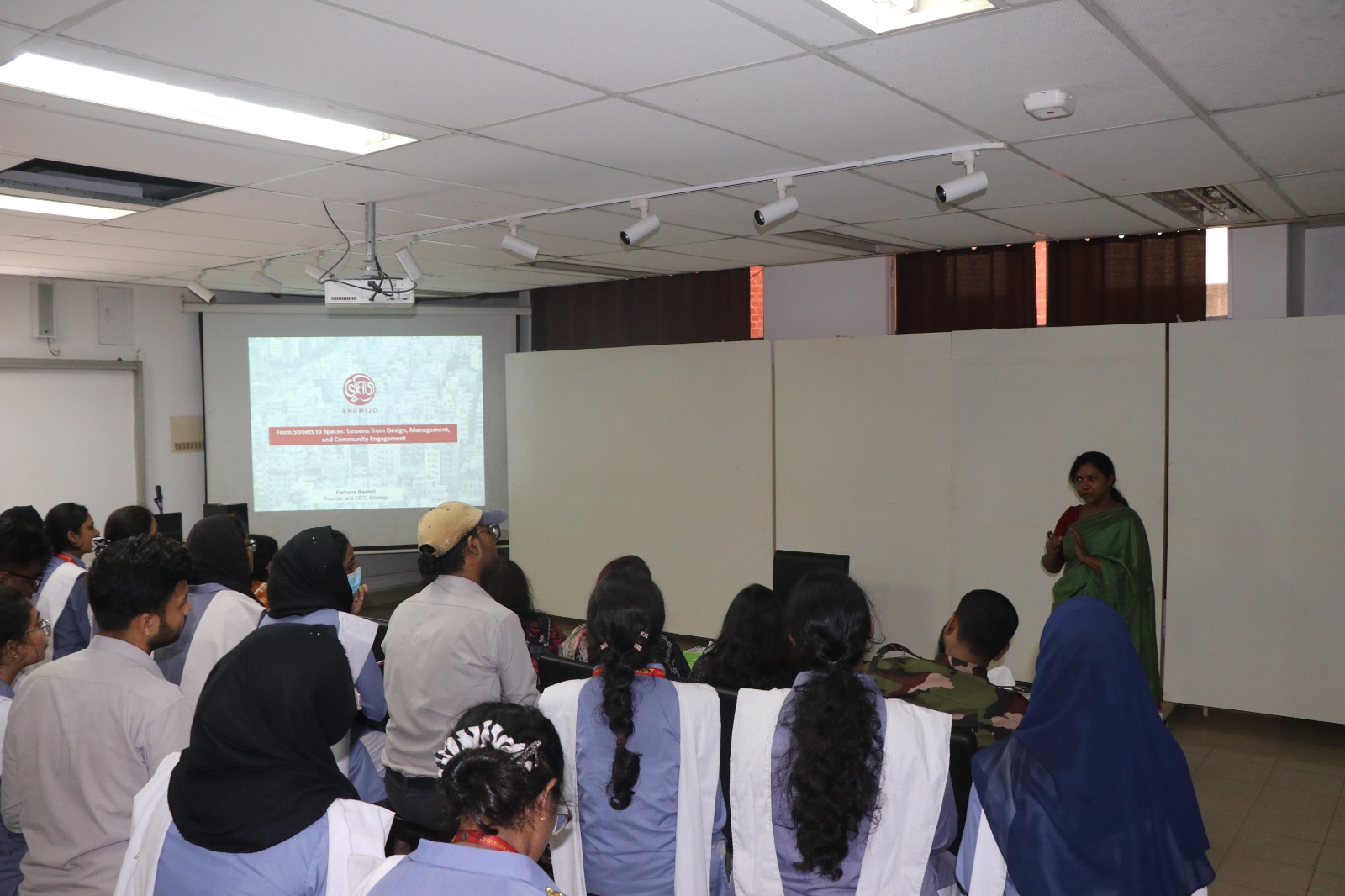 On June 6, 2024, Ar.Manifa Rehnuma(Landscape Architect & Co-Founder, and ORDEN, Dhaka),delivered a lecture on Designing Community Parks,at the Department of Architecture, MIST. The session was organized byAssoc. Prof Dr.Sudipti Biswas,Lecturer Arfa Islam, andLecturer Tahiad Chowdhury. Read More
