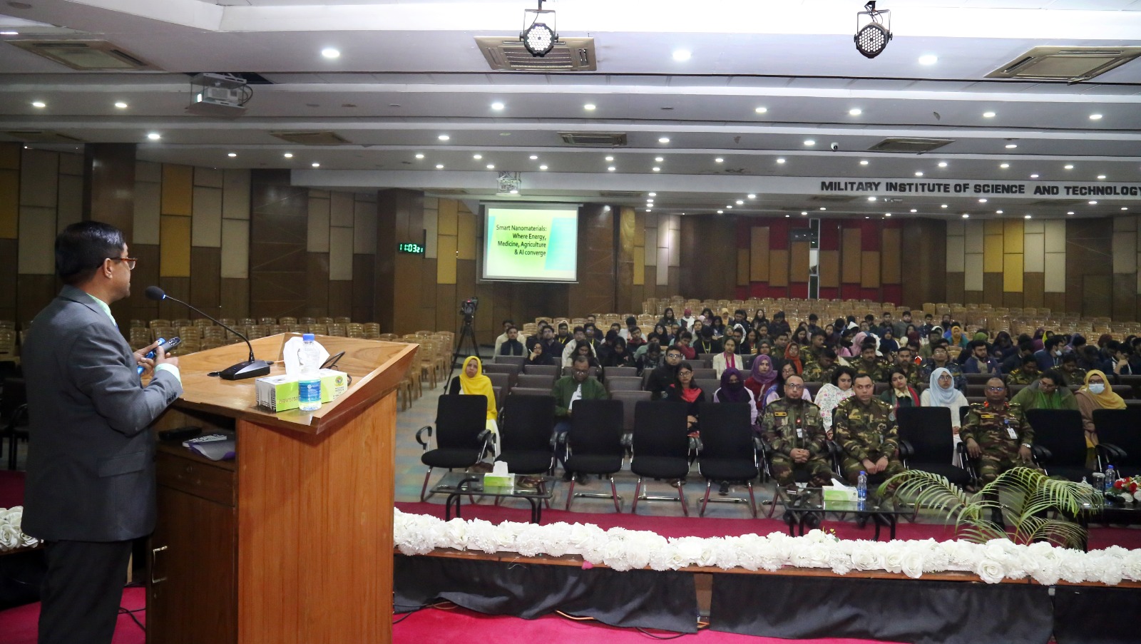 The Department of Biomedical Engineering at the Military Institute of Science and Technology (MIST) successfully organized a seminar titled “Smart Nanomaterials: Where Medicine, Energy, Material Science & AI Converge” on 1 January 2026. The event brought together faculty members, researchers, and students eager to learn about cutting-edge innovations in the rapidly evolving field of nanotechnology.